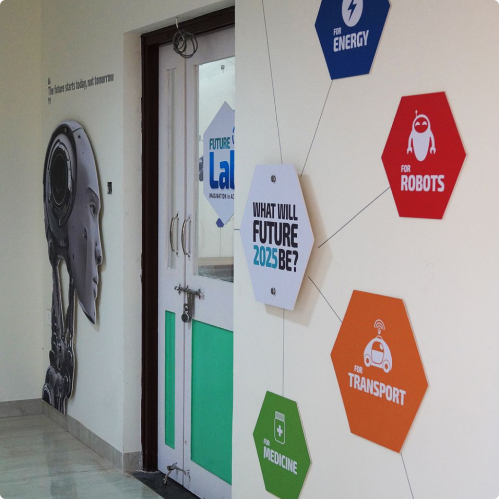 Selecting durable wall materials for institutions such as high-pressure laminates, textured paints, wall panels, and protective claddings ensures long-lasting performance in classrooms, corridors, and common areas. Thoughtful interior branding for educational institutions helps reinforce values, improve navigation, and create inspiring learning environments. Combined modern wall finishes and branding solutions balance functionality with visual impact, transforming plain walls into engaging design elements. Together, these solutions contribute to organized, vibrant, and professional educational interiors that support both learning and institutional identity.