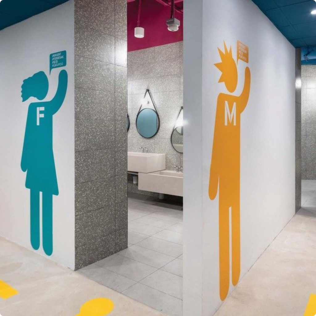 A thoughtfully executed hygienic washroom design for schools prioritizes proper ventilation, anti-skid flooring, and well-defined wet and dry zones. Inclusive accessible washroom design for institutions ensures barrier-free access with grab bars, adequate circulation space, and clear signage for all users. Supporting spaces like utility area interior design are equally important, providing organized zones for housekeeping and services. Together, modern washroom and utility area design solutions enhance cleanliness, functionality, and user comfort, creating safe and well-maintained facilities across educational campuses.