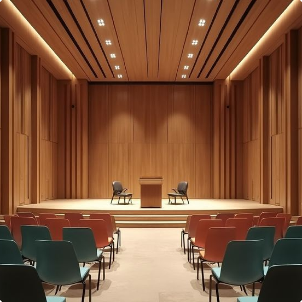 Well-executed seminar hall interior design is essential for creating engaging and functional spaces in educational institutions. A thoughtfully planned modern seminar hall design focuses on clear sightlines, comfortable seating, and integrated audio-visual systems to support presentations, discussions, and learning sessions. Carefully designed educational seminar hall interiors balance aesthetics with performance, using suitable lighting, acoustic panels, and durable finishes to maintain focus and comfort.