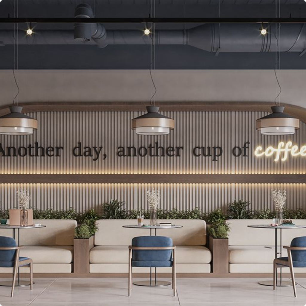 Effective restaurant wall branding strengthens brand identity and improves customer recall. Customized graphics, typography, and brand colors integrated into walls create a strong visual connection with guests. Stylish cafe branding wall design combines creativity with consistency, ensuring the brand story is reflected throughout the space.