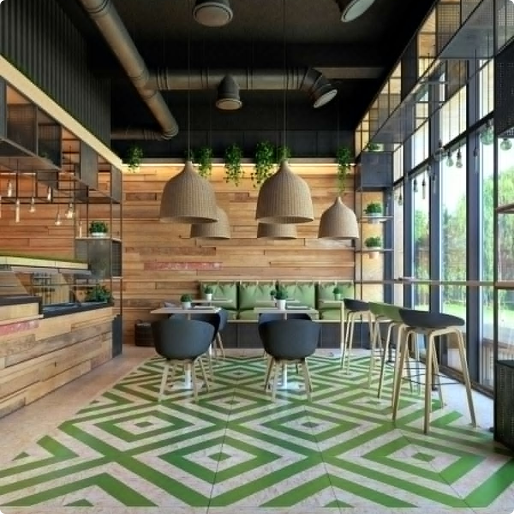 Professional restaurant flooring design plays a vital role in enhancing durability, safety, and overall ambience. The right flooring supports heavy foot traffic while complementing the interior theme. Thoughtful cafe flooring design focuses on aesthetics, easy maintenance, and slip-resistant surfaces to ensure long-term performance.