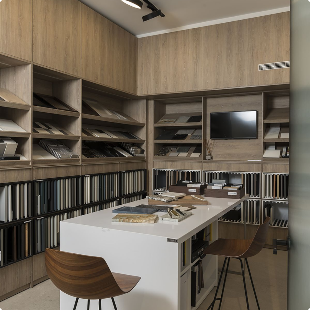 By combining smart planning with durable materials, storage and back office areas become efficient support zones that enhance organization, reduce operational delays, and contribute to the overall performance of the showroom.